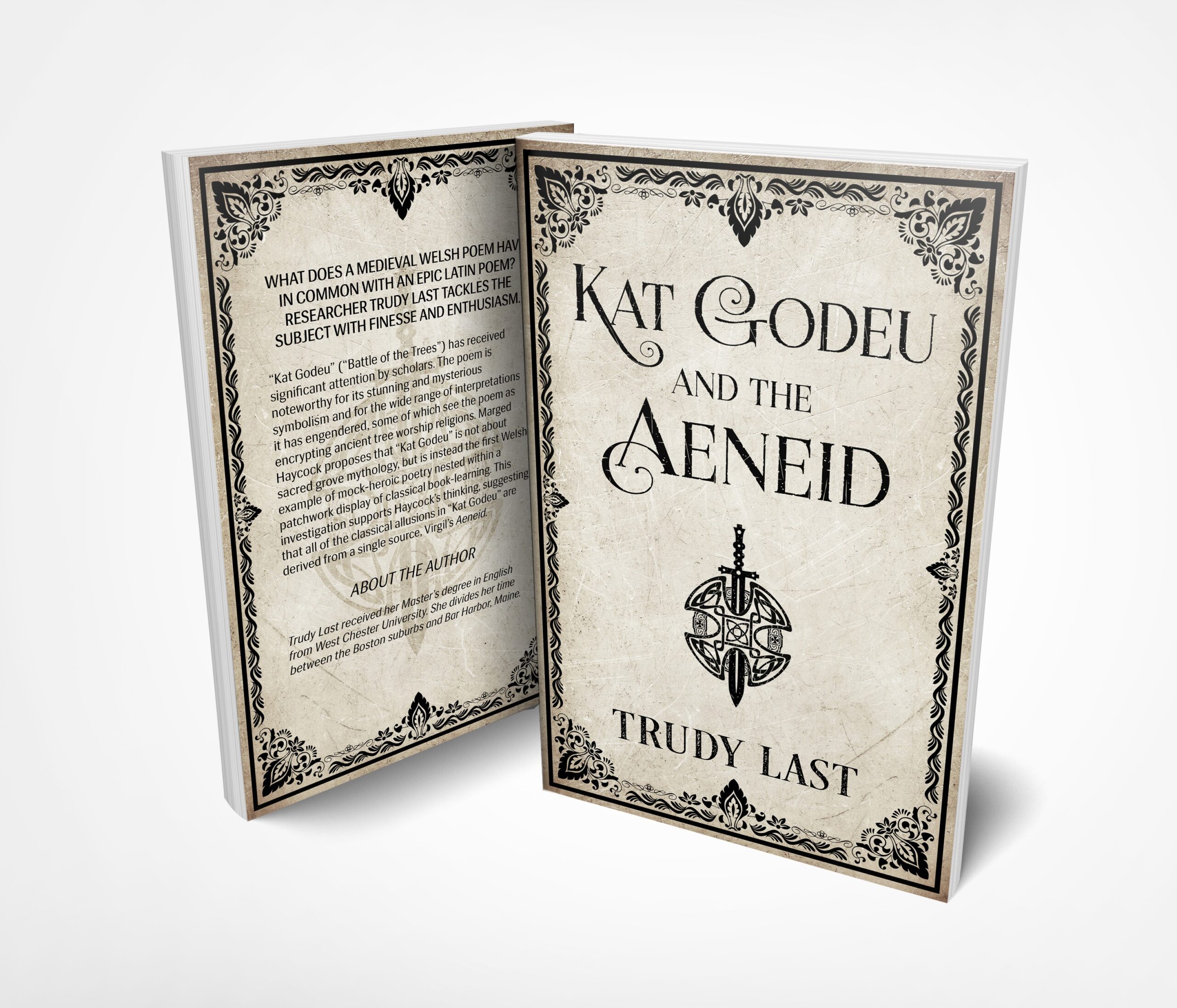 This author has gone through multiple book covers prior to discovering 99 designs and asking me to design a cover for her. She stated, "I can't believe how easy and fast this was!" Her book discusses how a medieval Welsh poem and an epic Roman poem are related, so I utilized a Roman sword and a Celtic tree of life figure and married them into a type of logo to represent her book.