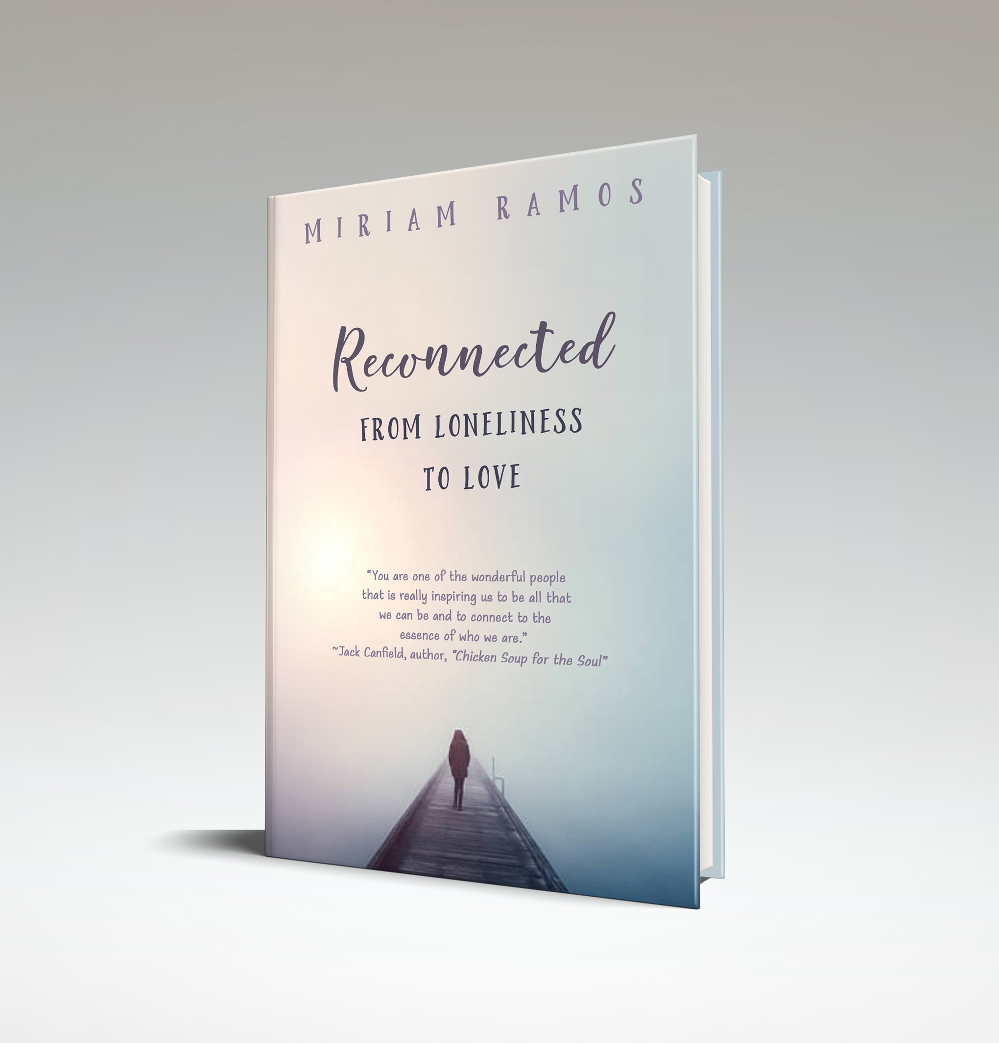 With this image and concept, we have an anonymous lady - could be of any race, religion, ethnicity - crossing a bridge, going toward a brighter future. The colors are soft, muted, yet hopeful. There's lots of space for the eye to rest. The testimonial is evident yet not the first thing one sees. The beautiful sky extends across the back of the book.